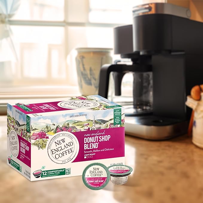 New England Coffee Donut Shop Blend Light Roast Single Serve Pods, 12ct Box (Pack of 1)