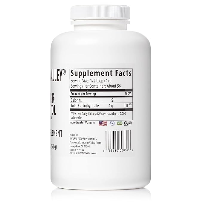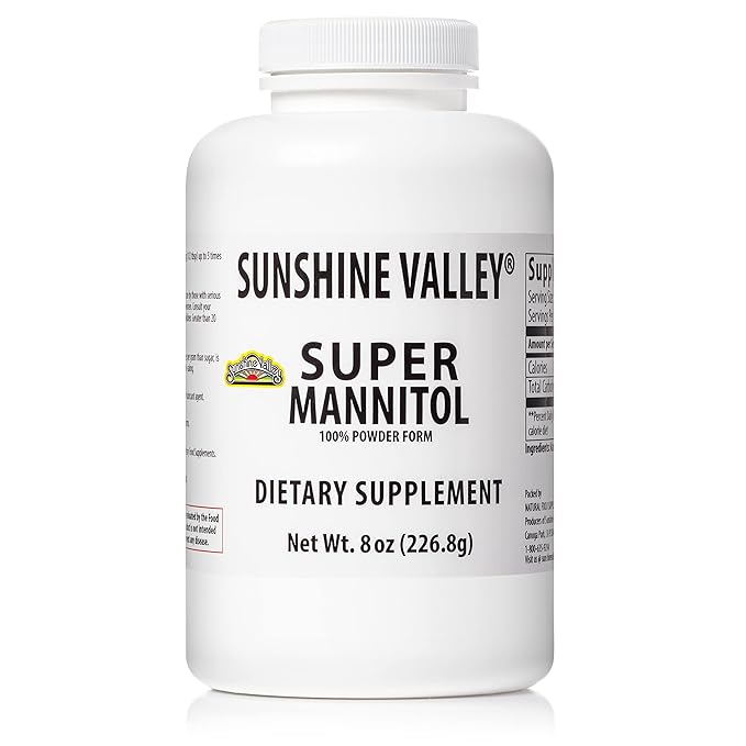 Sunshine Valley® Super Mannitol Powder, Natural & Healthy Artificial Sweetener, Ultra-Pure Sugar Substitute, Low Glycemic Dietary Supplement (8 Fl oz)