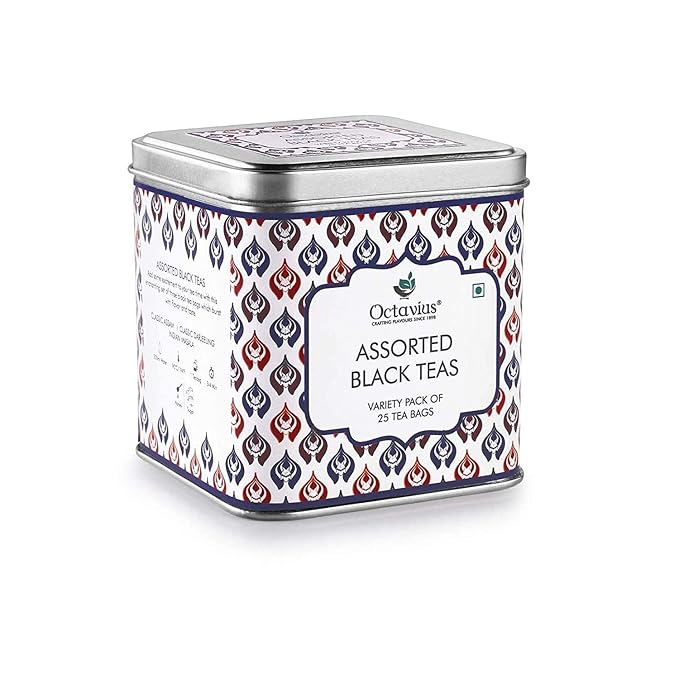 Octavius Assorted Black Tea Sampler Pack ??25 Tea Bags, 3 Flavors: Darjeeling, Assam, Indian Masala | Premium Black Tea Variety Pack