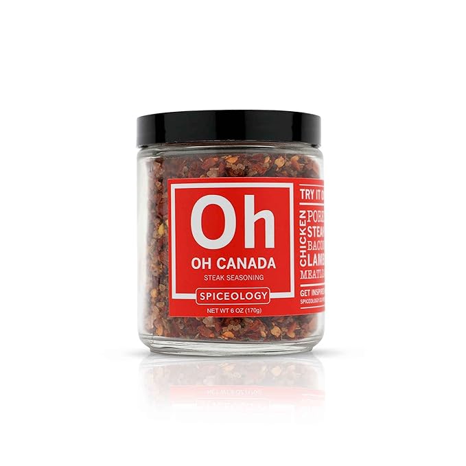- Spiceology Oh Canada steak seasoning (Oh) is a Montreal style seasoning that is amazing on red meat