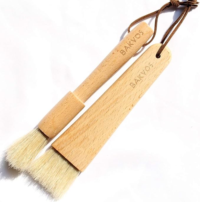 Pastry Brushes With Natural Wood and Bristles,Baking Brushes,Cooking Brushes,Food Brushes,Round and Flat,2 Pack
