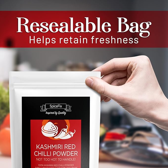 SpiceFix - Kashmiri Red Chilli Powder, Mild to Medium Heat Sun-Dried Indian Red Chili Powder, Natural Ground Vegan Kashmiri Spice in a Resealable Bag, 7 Ounces