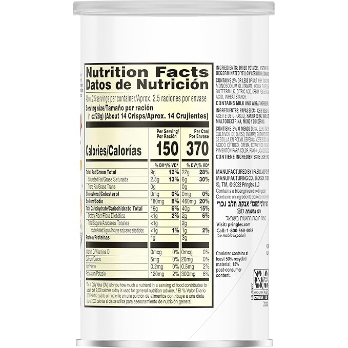 - Includes 12, 2.5oz cans of ready-to-eat potato crisps; Packaged for freshness and great taste