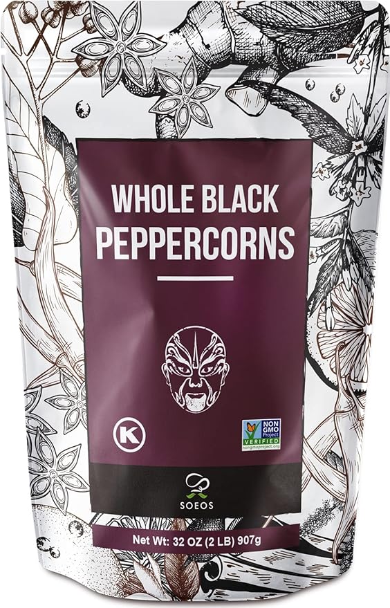 Soeos Black Peppercorns, 32oz (Pack of 1), Non-GMO, Kosher, Packed to Keep Peppers Fresh, Peppercorn for Grinder Refill, Whole Peppercorns
