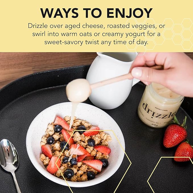 - WAYS TO ENJOY: Stir into hot water and shake over ice to enrich your cocktail recipes. Drizzle White is a light, delicate raw honey with a buttery texture, complementing fruit, lattes, and warm bread