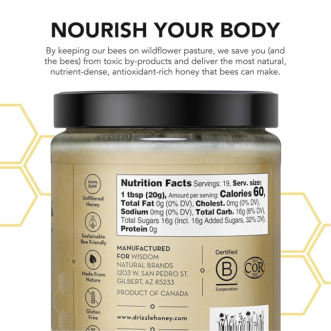 - FROM HIVE TO TABLE: Drizzle's honey is sourced with care from bee-friendly farms. It's non-GMO, gluten-free, certified kosher, and contains no artificial ingredients for pure taste