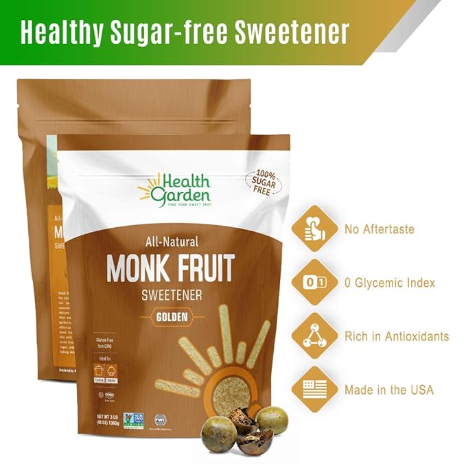 Health Garden Monk Fruit Sweetener, Golden - Non GMO - Gluten Free - Sugar Substitute - Kosher - Keto Friendly (3 lbs x 2)??,<div>