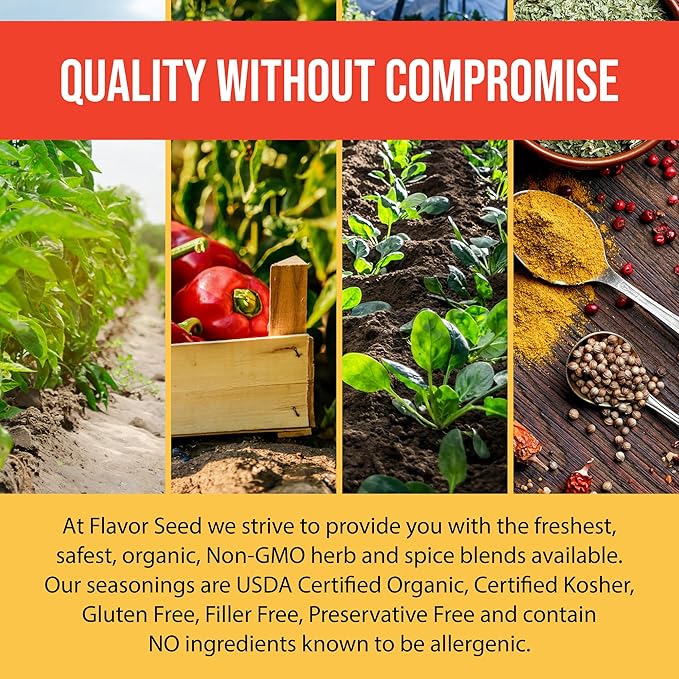 - 11 Simple Ingredients You Can Trust: Rock Yo' Taco includes only the good stuff with no MSG, fillers, binders, anti-caking agents, or preservatives. It's just Sea Salt, Organic Onion, Organic Paprika, Organic Garlic, Organic New Mexico Chile, Organic Cumin, Organic Ancho, Organic Cocoa Powder, Organic Oregano, Organic Coriander, Organic Red Pepper. All Flavor Seed spices and seasonings are Certified USDA Organic, Certified Kosher, and KSA Pareve. Try one of our all purpose seasoning mixes today!