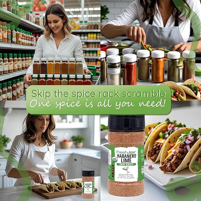 FreshJax Organic Spicy Habanero Lime Seasoning Sea Salt ??9.2?¯oz Large Bottle Hot Sea Salt, Non?‘GMO, Gluten?‘Free, Keto, Paleo ??No Preservatives ??Bold Citrus Heat for Cocktail Rimmer