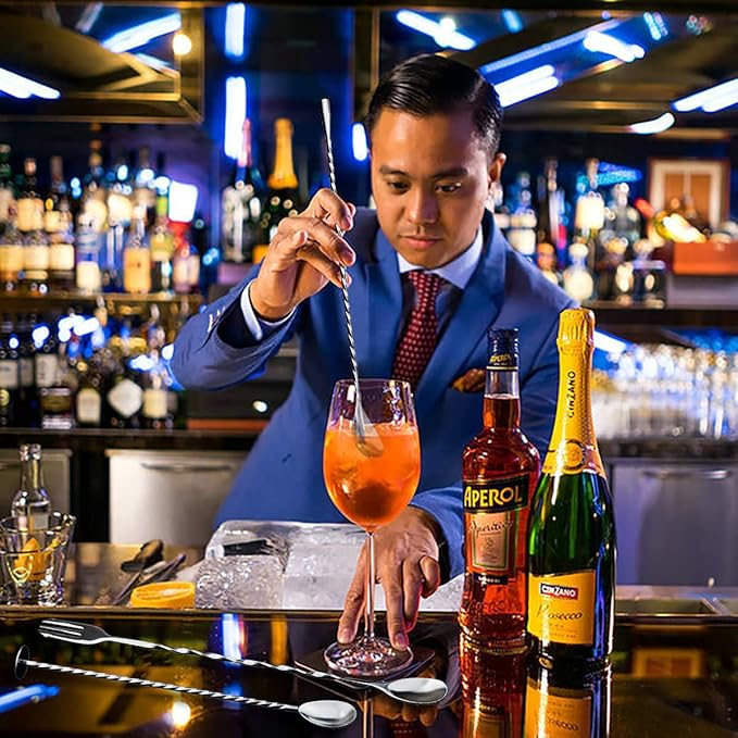 - PREMIUM MATERIAL - These bar spoons made of 304(18/8) food grade stainless steel for superb durability and corrosion resistance, BPA free and eco-friendly material unlike the plastic stirrers, they are dishwasher safe, reusable and easy to clean. Makes it easy to mix like the pros do, a professional cocktail mixing spoons, that you can use over and over again.