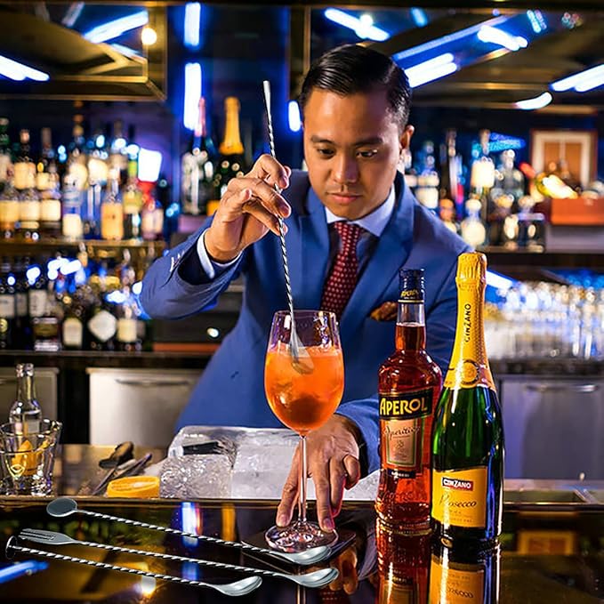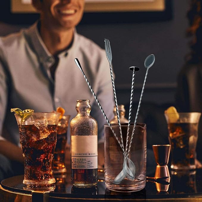 - PREMIUM MATERIAL - These bar spoons made of 304(18/8) food grade stainless steel for superb durability and corrosion resistance, BPA free and eco-friendly material unlike the plastic stirrers, they are dishwasher safe, reusable and easy to clean. Makes it easy to mix like the pros do, a professional cocktail mixing spoons, that you can use over and over again.