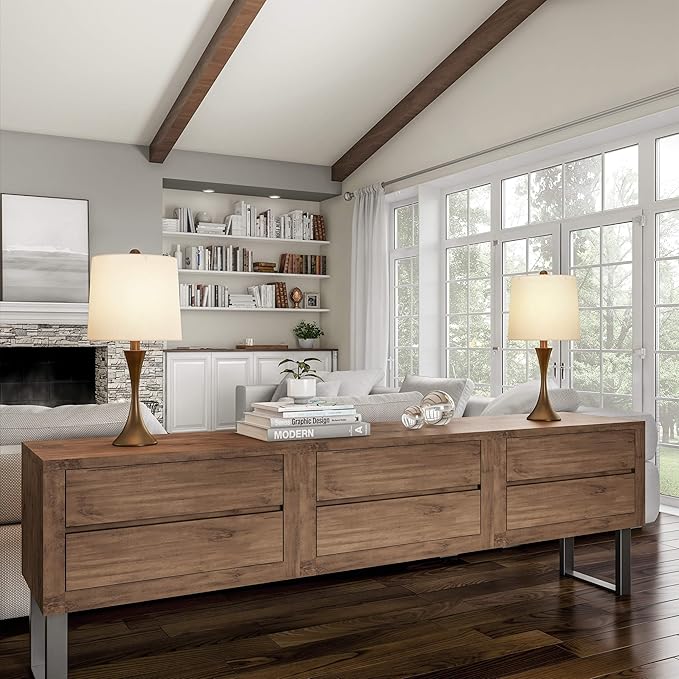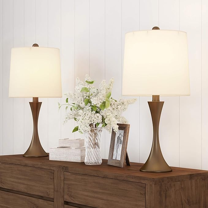 - STYLISH DESIGN - Each bedside lamp's flared trumpet-shaped base and matte bronze finish add a chic touch to your nightstands and side tables. Create a mid-century modern look by using this set of lamps for living rooms, bedrooms, entryways, or offices.
