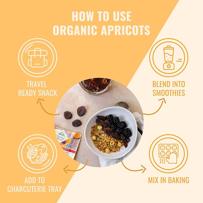 - CREATIVE USES: Our one-ingredient dried apricots also make for a delicious and nutritious addition to a cheese platter, gift baskets, mix with granola and yogurt, add to your smoothies, bake, or eat them straight out of the bag!