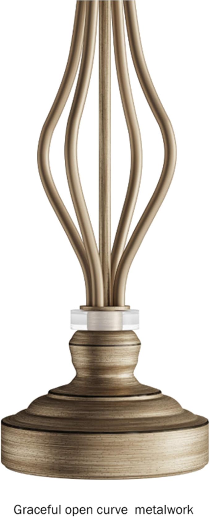 - STYLISH DESIGN- The lamp body features a unique metal openwork with graceful curve design in a distressed gold finish. The elegant silhouette is a stylish touch for side tables or nightstands, in your entryway, living room, bedroom or office.