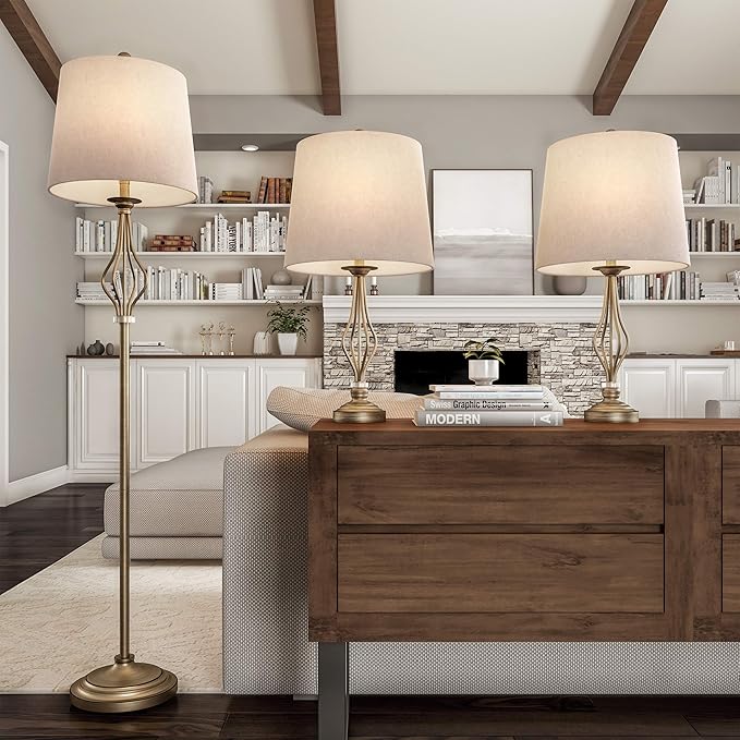 - MATCHING 3-PIECE SET- With two table lamps and a standing floor lamp included, you can place them separately in different rooms or utilize them in one room for a more consistent look. The included linen shades are sure to complement any décor.