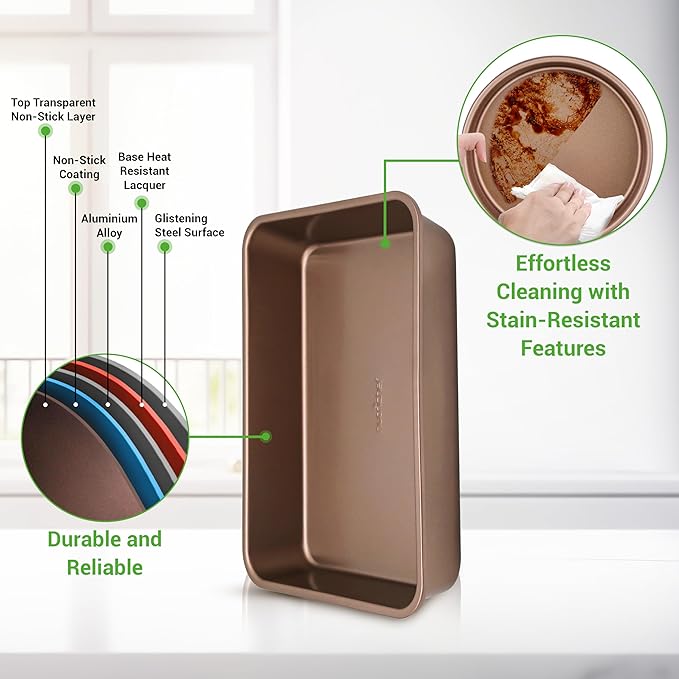 - NONSTICK PREMIUM METALLIC COATING: Thoughtfully designed inside and out, the carbon-steel bakeware set features a nonstick coating, which reduces the need for excess butter or oil in the pan and helps distribute heat evenly across the pan