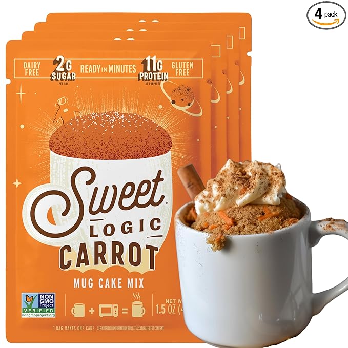 Sweet Logic Keto Dessert Mug Cake Mixes - Carrot Cake - Low Sugar - Gluten-Free - Low Carb - Diabetic-Friendly Sweets - Natural Ingredients - High Protein - Delicious Keto Treats (4 Pack)