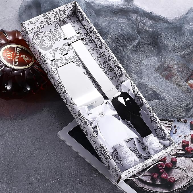TANG SONG Rustic Wedding Cake Knife and Serving Set Bride & Groom Feature Wedding Cake Knife & Server Set (Set of 2)