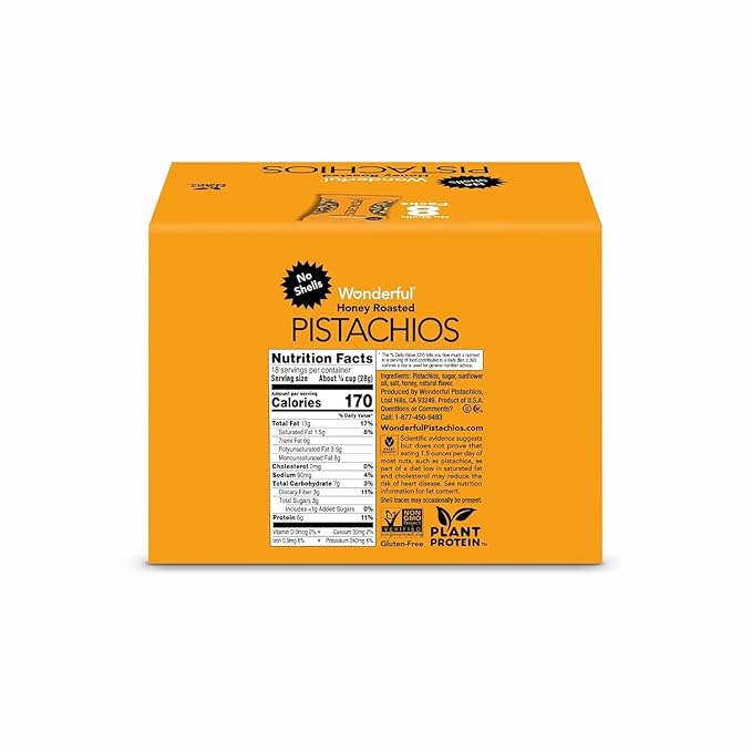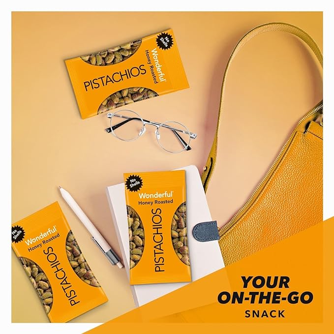 Wonderful Pistachios No Shells, Honey Roasted Nuts, 2.25 Ounce Bag (Pack of 8), Protein Snacks, Sweet Snacks, Gluten Free, Healthy Snack