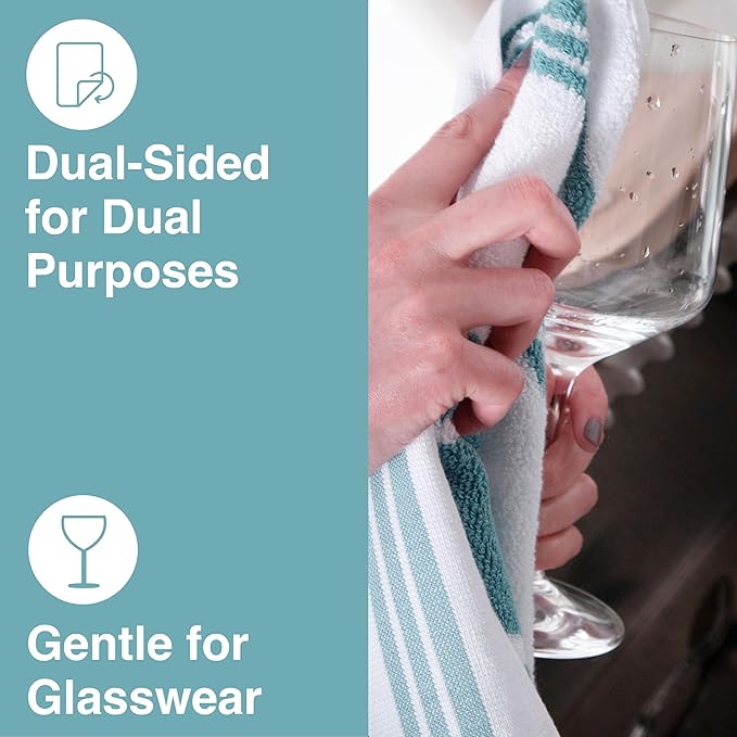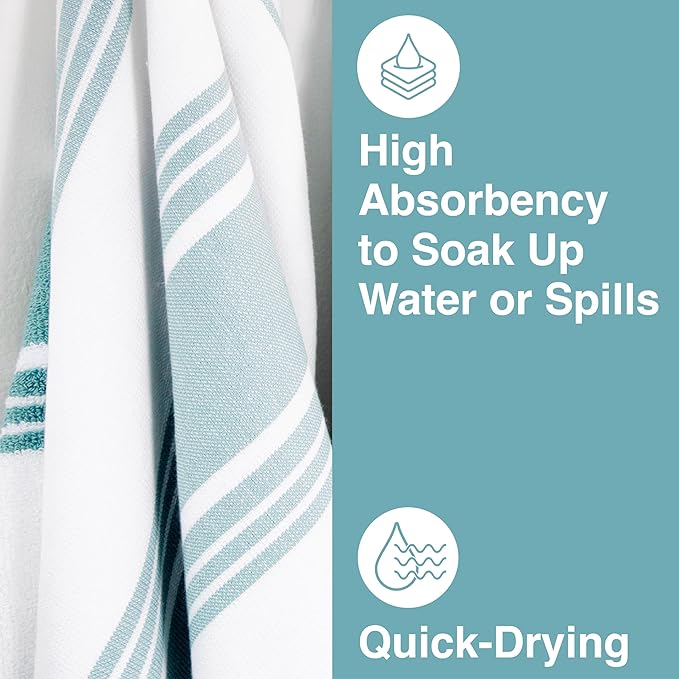 - BUILT TO LAST; Dressed to impress, these premium cotton dish towels are crafted with beautiful, highly absorbent 100% pre-washed woven cotton featuring quality finished stitched hems. This kitchen towel set is fashionably striped to impress.