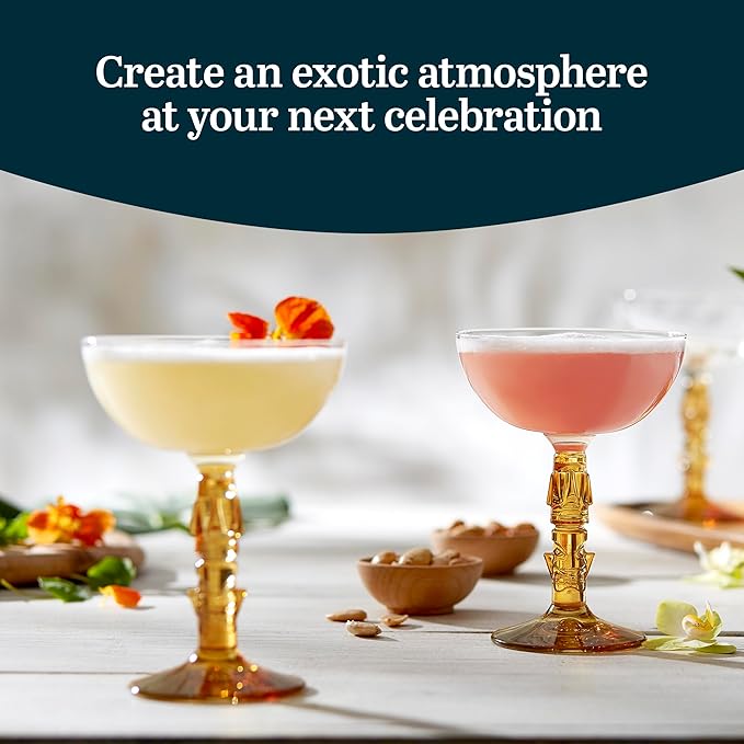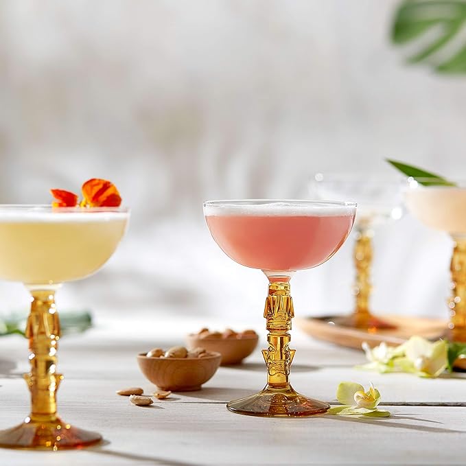 - Vintage Style: Crafted from premium quality glass, our tiki cocktail coupe glasses feature a vintage style, detailed amber stem and classy wide rim; these sturdy and elegant martini coupe glasses are easy to hold and add style to your occasion