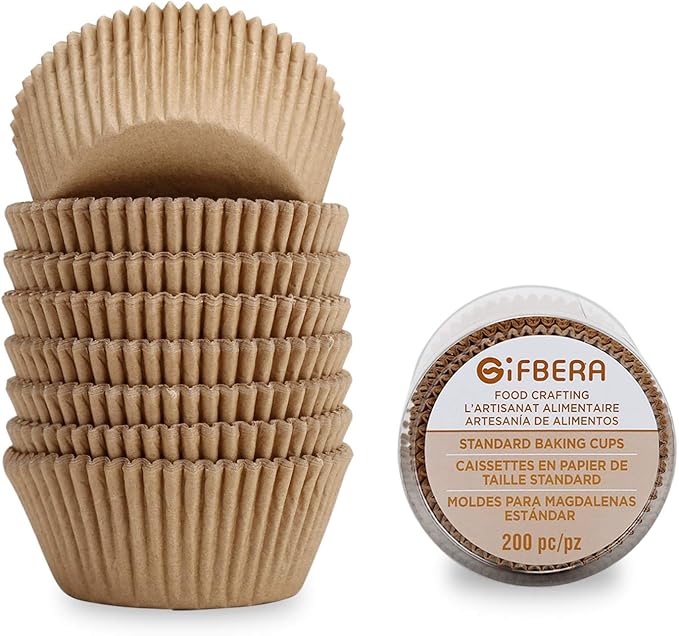 Gifbera Natural Odorless Cupcake Liners Standard Greaseproof Paper Muffin Baking Cups 200-Count, Natural Color