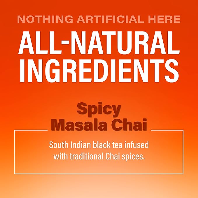- PREMIUM NATURAL INGREDIENTS: Flowery Orange Pekoe black tea, Natual Tea Extract, Cardamom Seeds, Ginger Root, Cinnamon Chips, Natural Flavors, Cloves. Comes with 30-day Satisfaction Guarantee