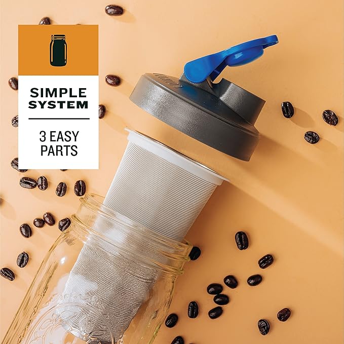 - INCLUDES MESH STAINLESS STEEL FILTER: Say goodbye to stray coffee grounds in your drink! Equipped with a top-notch filtration system, our high-quality mesh prevents coffee grounds from entering the jar - ensuring a smooth, clean brew every time. Ideal for making all types of beverages, including tea, its compatibility with various coffee grounds makes it a versatile addition to your kitchen