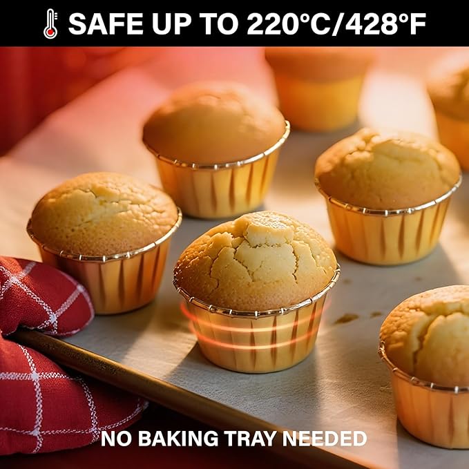 - 【No Baking tray needed】-These muffin cups are made of premium quality aluminum foil that make these strong and sturdy. Put them into the oven and bake them directly. No Baking tray needed.