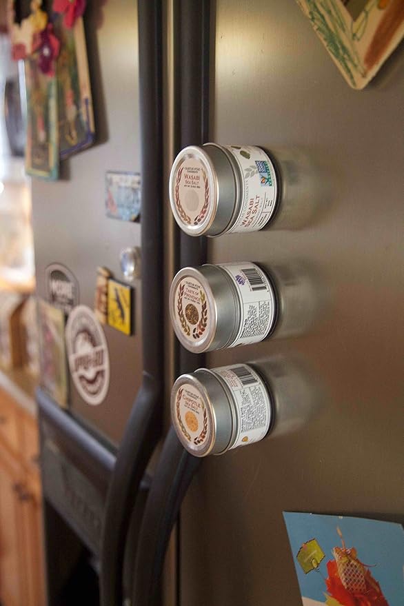 - MAGNETIC TINS: Each and every tin has a unique magnetic base that sticks to most metal surfaces: your fridge, BBQs, hood, range, and oven. Keep your artisanal seasoning within easy arm’s reach, and transform simple plates into chef-driven gourmet dishes.