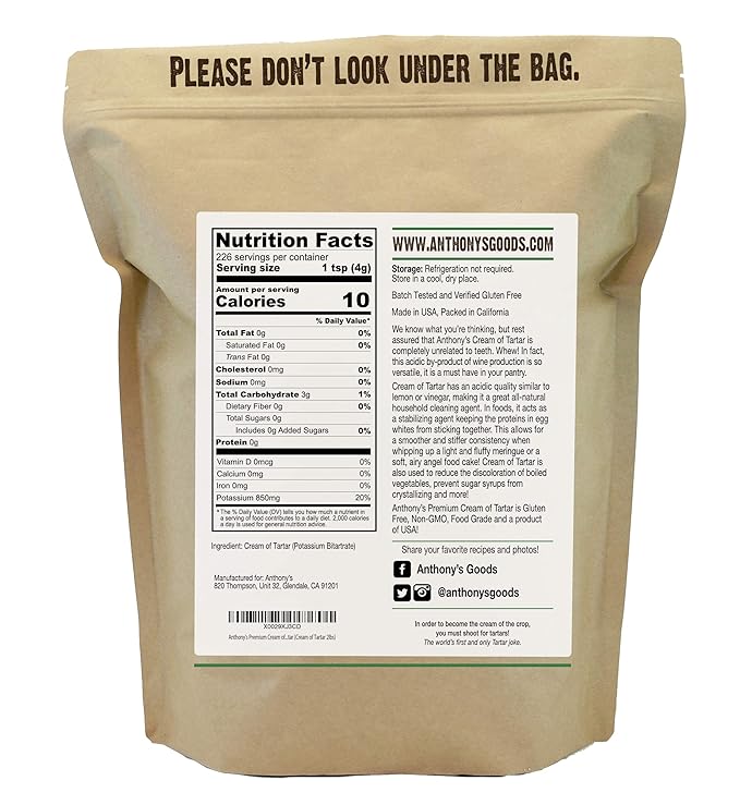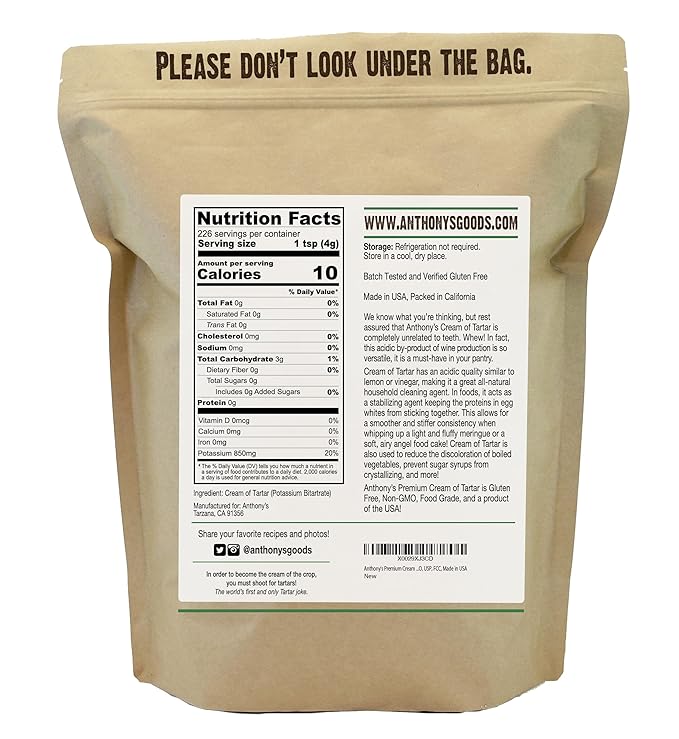 Anthony's Premium Cream of Tartar, 2 lb, Gluten Free, Food Grade, Non GMO, USP, FCC, Made in USA