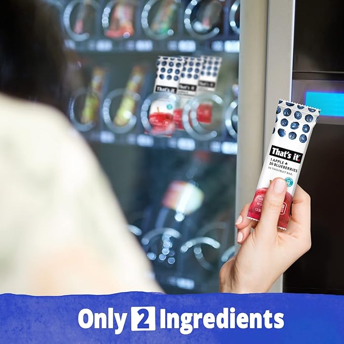 - HEALTHY SNACKING ON THE GO: 87% of Americans are not getting their daily recommended fruit intake, so toss That’s It. Fruit Bars in your gym bag or child’s lunchbox for balanced nutrition on-the-go, or try infusing with other recipes. Great for weight management, these bars are only 100 calories and contain vitamins A and C, 3g fiber, and are the purest alternative to nearly every bar, snack, juice, granola, fruit strips, fruit bits, and dried fruit.