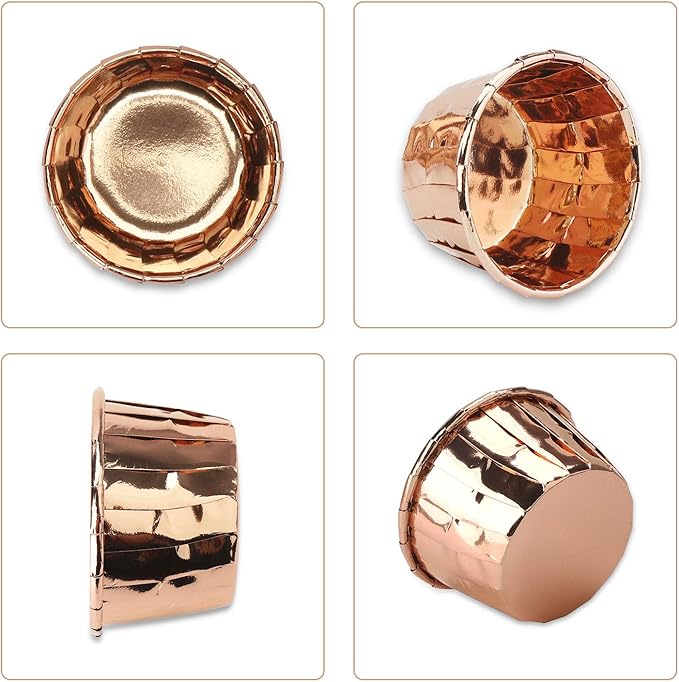 EUSOAR Gold Cupcake Cups, 1.9" x 1.6" x2.7" Disposable Muffin Liners 50pcs, Rose Gold Cupcake Baking Cups, Little Baking Cups, Ramekin Aluminum Cupcake Tip Pan Ramekin Holders