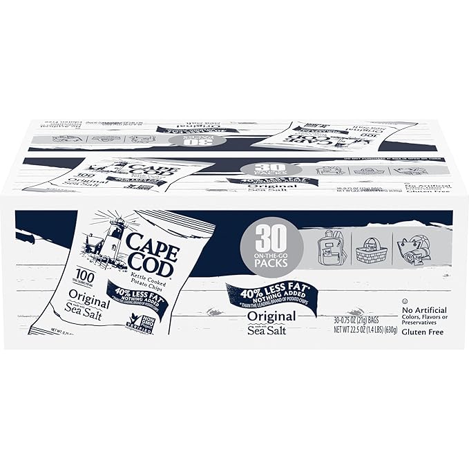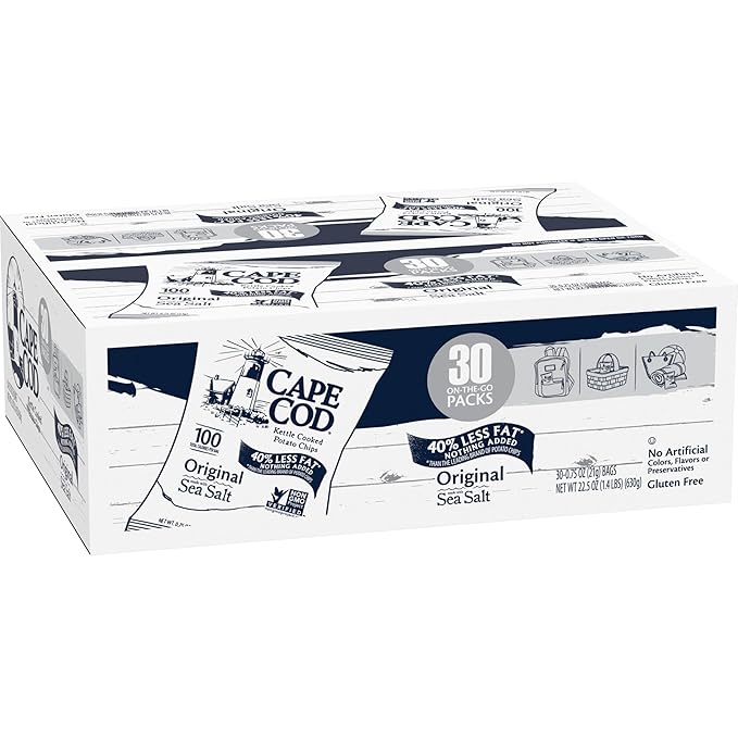 Cape Cod Potato Chips, Original Less Fat Kettle Cooked Chips, Snack Bags, Reduced Fat Original, 0.75 Oz (30 Count)