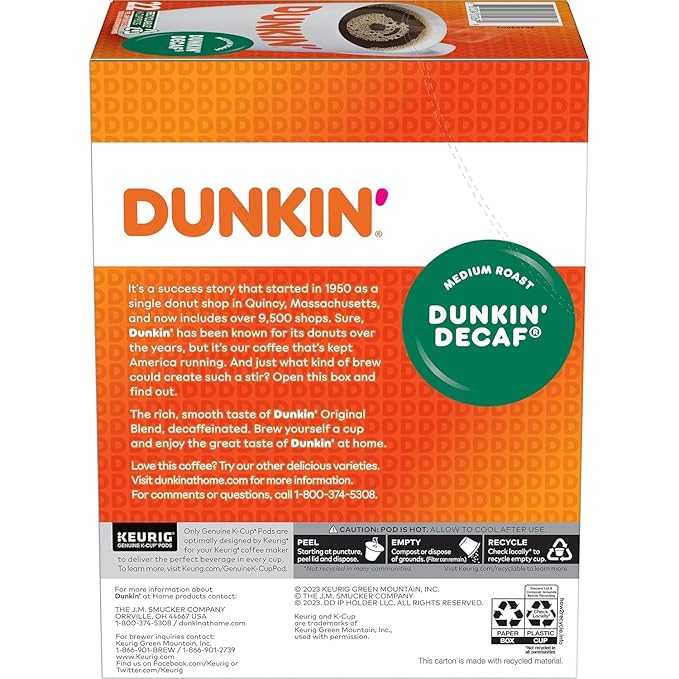 - The rich, smooth, and unmatched Dunkin’ coffee taste that made the brand famous, decaffeinated