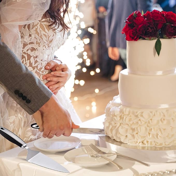 - [ VERSATILE USE ] - It not only works as wedding cake knife and server set but also can be used for various indoor-outdoor parties like wedding, birthday and baby shower for cutting and serving cakes, pastries, pizzas, pies, etc. It can also be used in the daily home and kitchen use