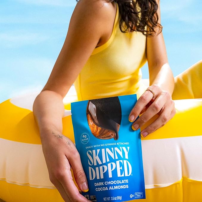 - RESEALABLE BAGS: This pack includes (5) resealable 3.5 oz Bags of SkinnyDipped Dark Chocolate Cocoa Almonds. The ideal on-the go healthy snack for adults