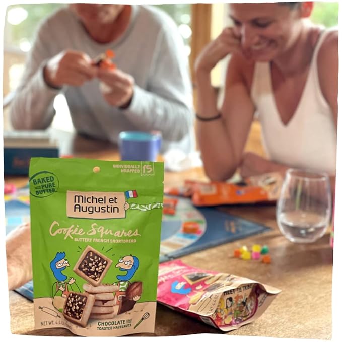 Michel et Augustin Cookies, Individually Wrapped Snacks, 3 Pack, Gourmet Milk Chocolate & Hazelnut Shortbread, 15 French Butter Cookies per bag