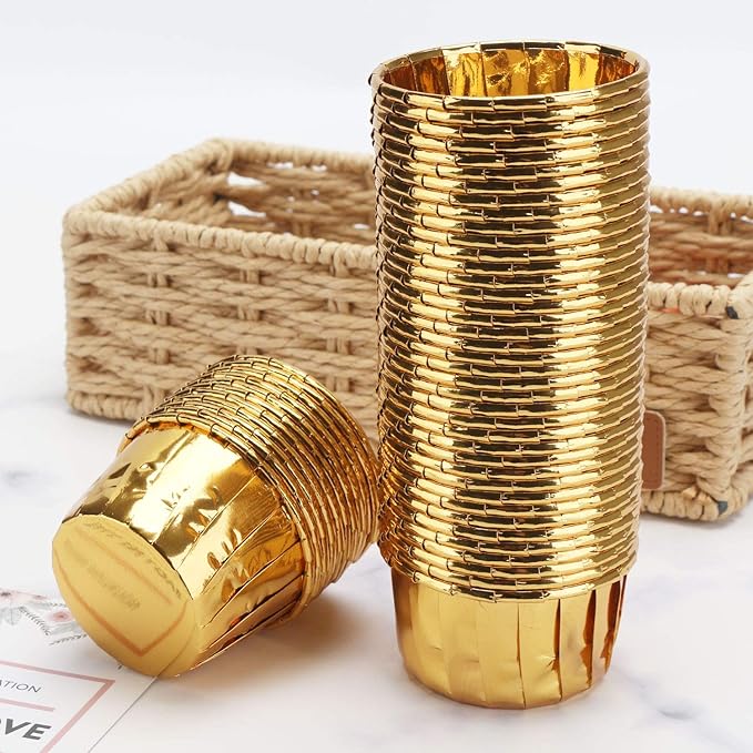 EUSOAR Gold Cupcake Liners, 100pcs 3.5 oz Disposable Aluminum ramekins, Foil Baking Cups, Aluminum Foil Muffin Liners, Aluminum Cupcake Ramekin Holder Cups for Wedding Birthday Party