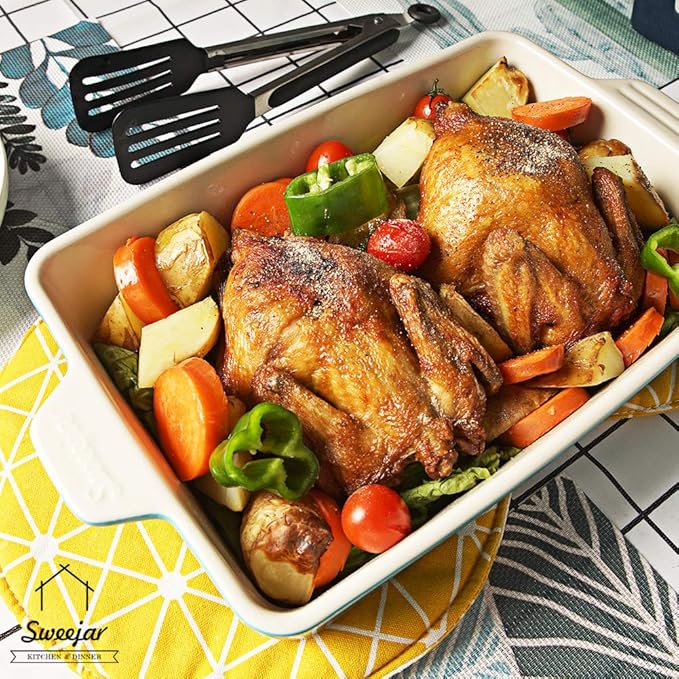 - Easy to Hold:The Sweejar casserole dish features a stylish and elegant rectangular shape with double handles, making it easy to transport your dishes from the oven to the table. Impress your guests with this charming addition to your kitchen and dining table