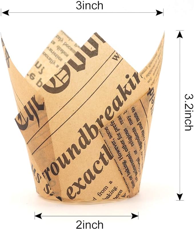 - Beautiful design - The tulip flower shaped and newsprint design makes the entire appearance look very elegant, unique newspaper design adds exquisite style to showcases and plates,which can decorate your wonderful food,making your treats look even more delicious!