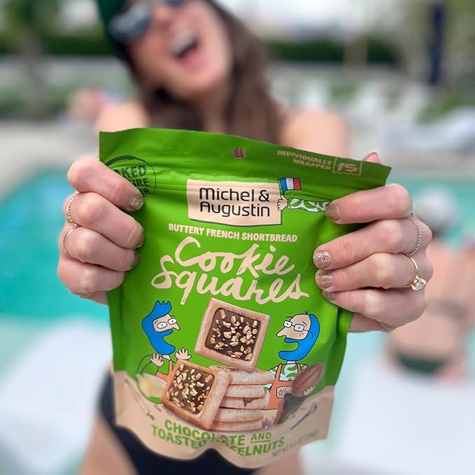 - GOURMET SHORTBREAD COOKIES: 15 individually wrapped butter cookies filled with soft hazelnut chocolate ganache and sprinkled with real bits of toasted hazelnut.