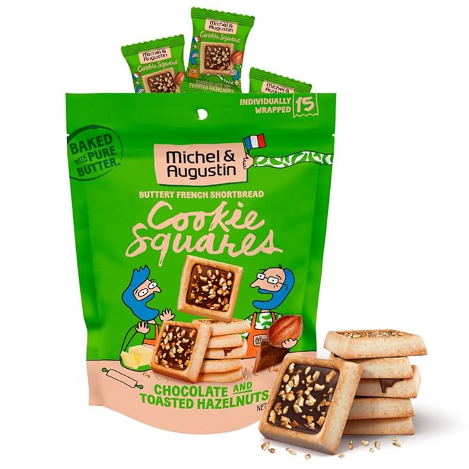 Michel et Augustin Cookies, Individually Wrapped Snacks, Gourmet Milk Chocolate & Hazelnut Shortbread, 15 French Butter Cookies