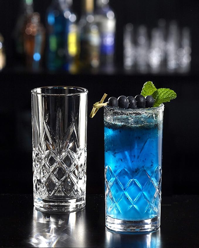 - Premium Drinking Glasses – This highball glasses set for kitchen, dining room, and hosting use holds 12 ounces of liquid making it perfect for cold beer, water, or soda.