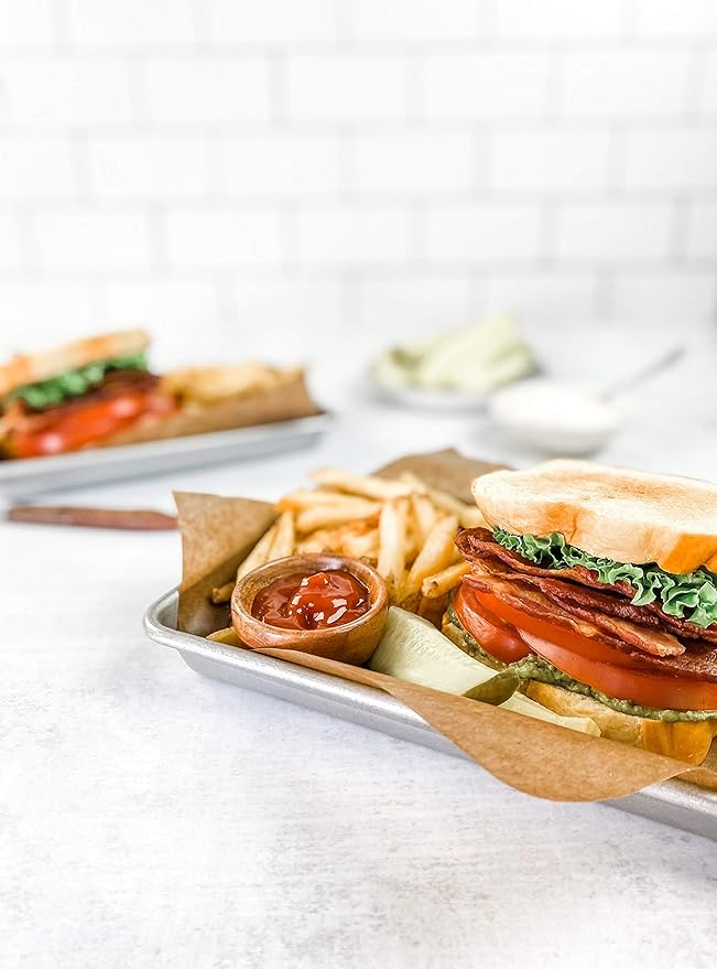 - Classic Mini Sheet Pan Set of 2 for baking treats or roasting vegetables; commercial grade and heavy gauge aluminized steel