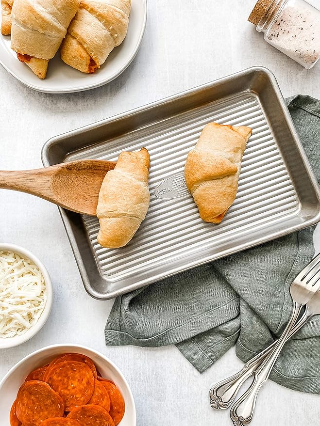 USA Pan Bakeware Mini Sheet Baking Pan Warp Resistant with Nonstick Quick Release Coating, Aluminzed Steel, Set of 2