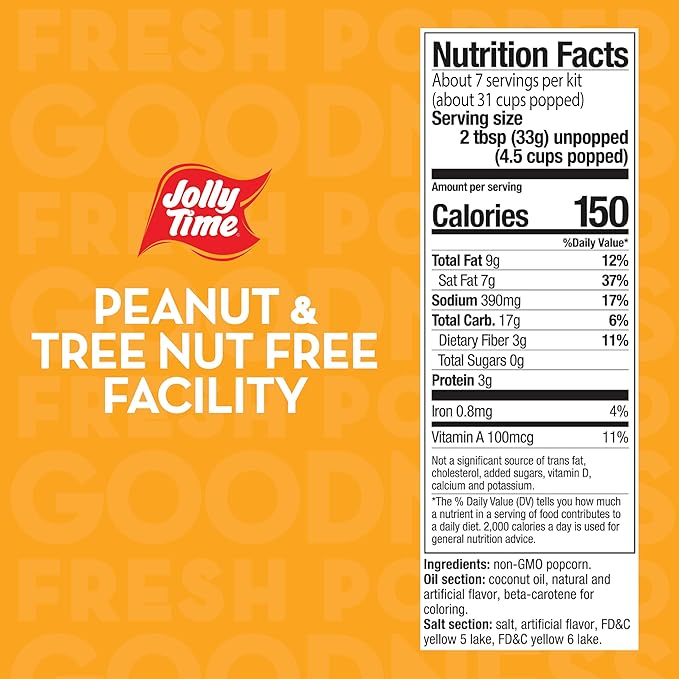 - PREMIUM INGREDIENTS | For a consistent butter flavor and pop every time; 100% whole grain, gluten free, non-GMO yellow corn kernels, coconut oil and seasoning salt