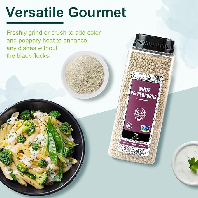 Soeos White Peppercorns, 18oz (Pack of 1), Non-GMO, Kosher, Packed to Keep Peppers Fresh, Peppercorn for Grinder Refill, Whole Peppercorns