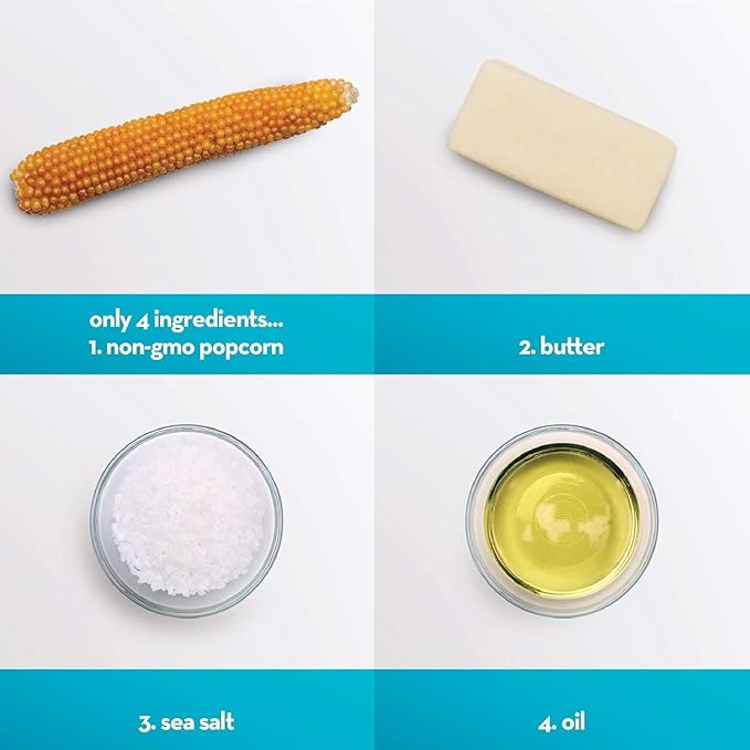 - NOTHING ARTIFICIAL 4 SIMPLE INGREDIENTS: Non-GMO popcorn kernels, palm oil, clarified butter and sea salt to season. This low-calorie, premium popcorn in our new bulk size is the best bang for your bowl!