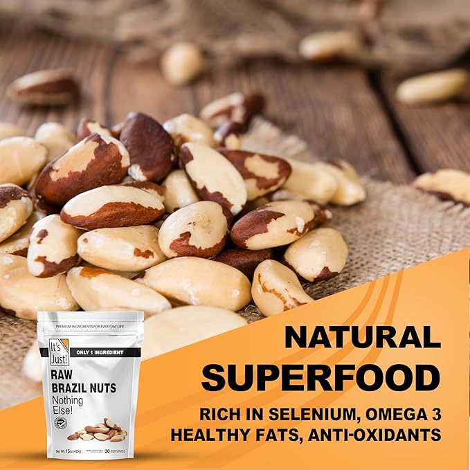 - Raw Brazil Nuts // It's Just! Raw Brazil Nuts - nothing else! Sourced from Brazil & Peru. Snack-attack pantry essential!